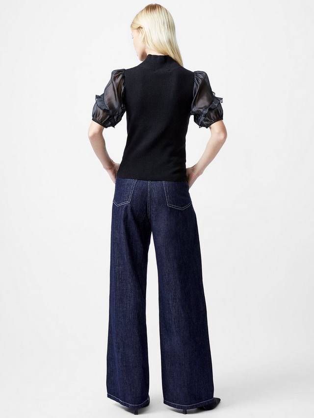 Добавьте женственной элегантности в свою коллекцию топов с помощью топа из органзы с короткими рукавами Kristine. Этот мягкий трикотажный топ с ребристым фактурным лифом оживляет фигуру благодаря модному высокому вырезу и изысканным коротким рукавам-буфам из органзы с романтичной отделкой в виде оборки.