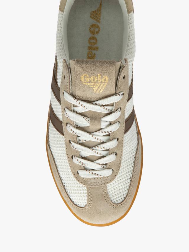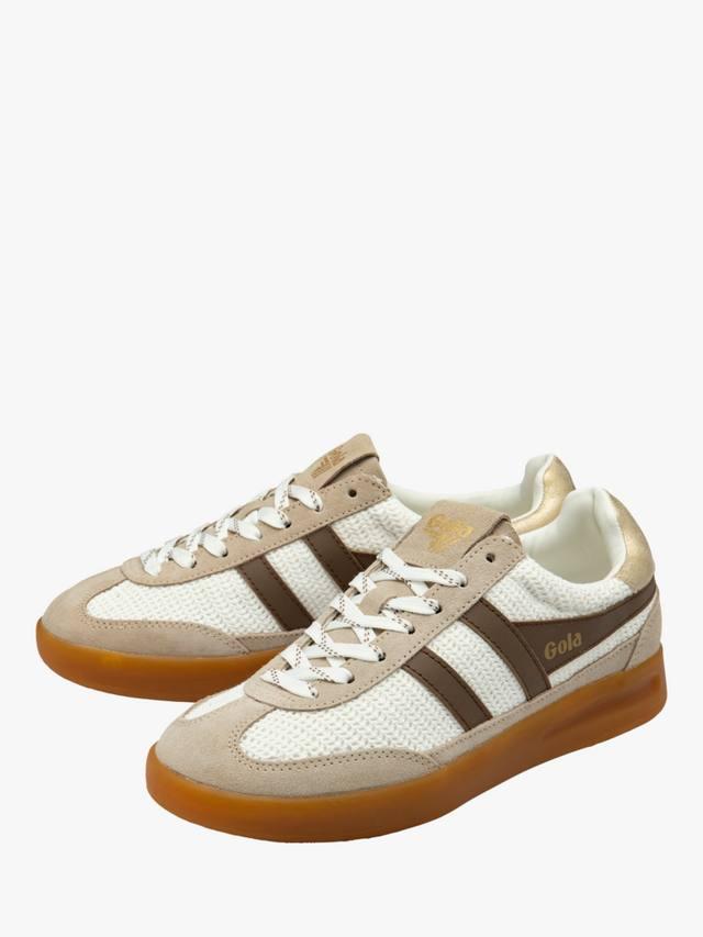 Верх из неярко-белого плетения с открытым плетением сочетается с замшей цвета кости и выдры в этой новой модели от Gola.