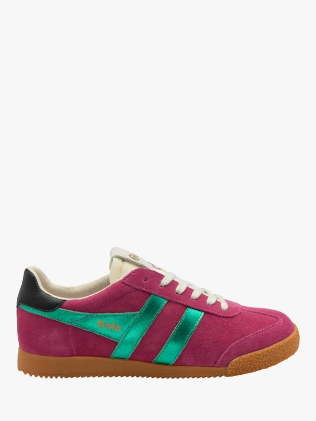 В модели Elan Glitz, где главное внимание уделяется роскошным тонам, кроссовки отличаются изумрудно-зеленой отделкой в виде крыльев на замшевом верхе цвета фуксии и резиновой подошве, а также черной вставкой на пятке.