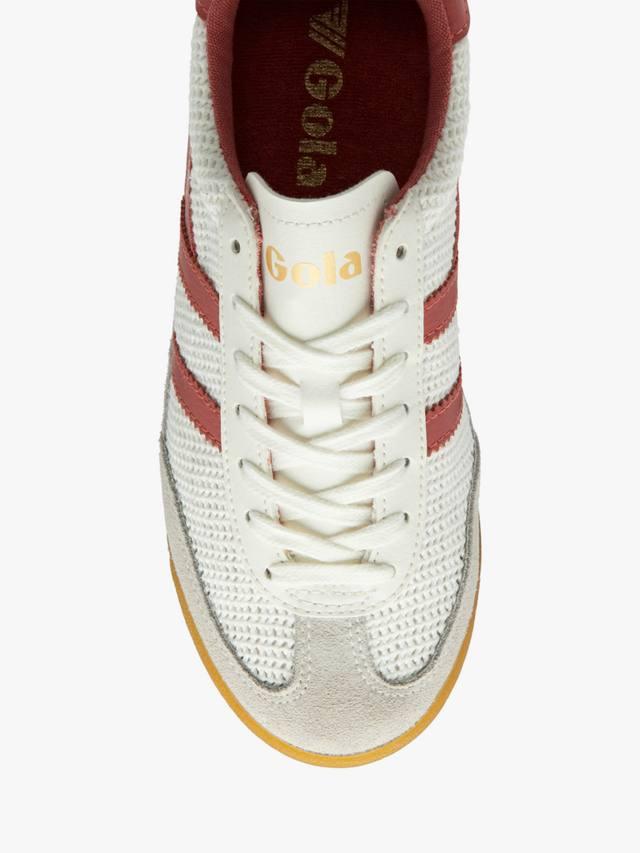 Классический силуэт торнадо, который мы все знаем и любим, в сочетании с верхом, связанным крючком, создаёт ощущение новизны и свежести. Неизменная цветовая палитра дополнена слегка клиновидной резиновой подошвой, которая придаёт этим женским кроссовкам Gola очарование старой школы.