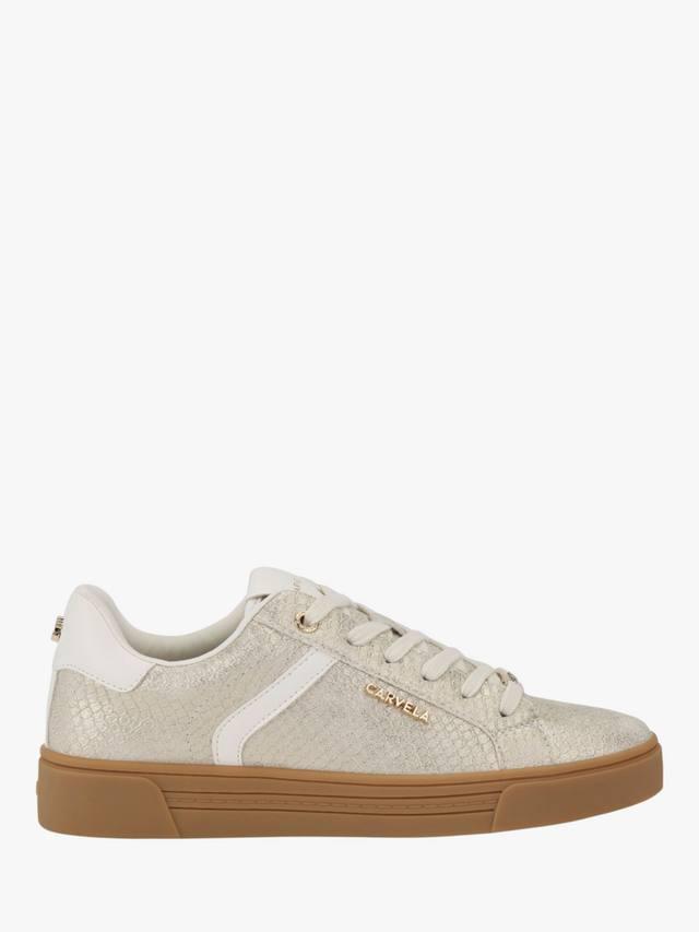 Эти кроссовки Carvela, соответствующие тренду спортивного стиля, обеспечивают долговечность и комфорт. Они оснащены плоским каблуком с контрастными полосками по бокам, закругленным носком и классической шнуровкой спереди.