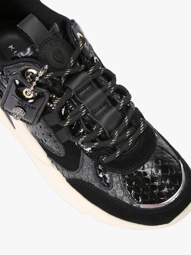 Сделайте свой день ярким с этими текстурированными кроссовками с эффектом змеиной кожи от Kurt Geiger London. Контрастный текстурированный верх, шнуровка и фирменная подвеска в виде бирки обеспечат вам комфорт и нотку юмора, будь то прогулка или встреча с друзьями.