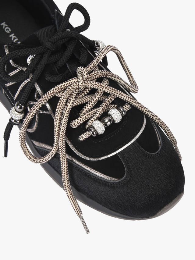 Замшевые кроссовки от KG Kurt Geiger с удобной плоской подошвой, игривой шнуровкой и круглым закрытым носком. Идеально подходят для повседневных дней.