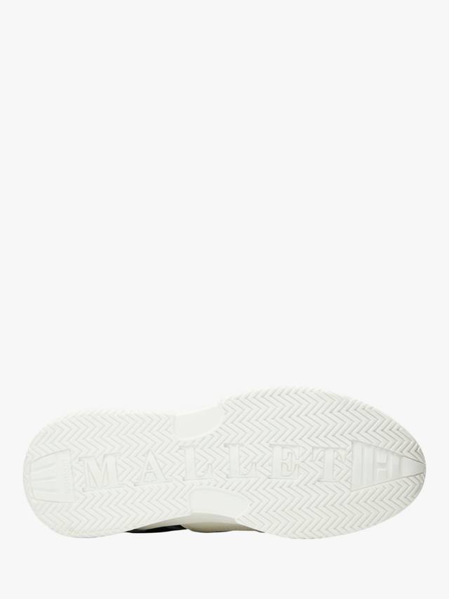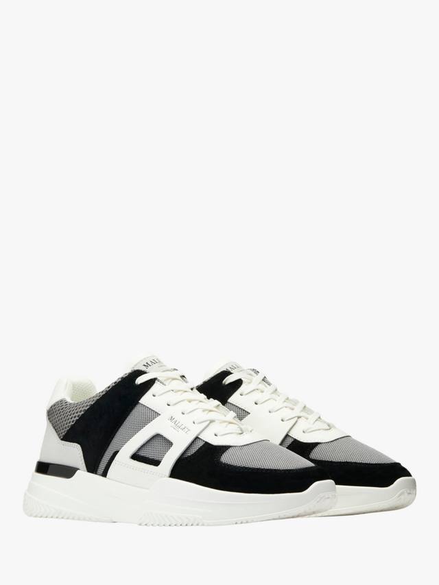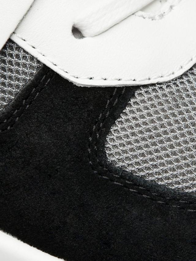Эта интригующая модель отличается смелым многослойным сочетанием однотонной кожи и замши, а также верхом с мелкими отверстиями и шестиугольной сеткой. Фольгированный брендинг и редкий глянцевый фиксатор пятки подчеркивают спортивную эстетику, оставаясь при этом безоговорочно премиальными.