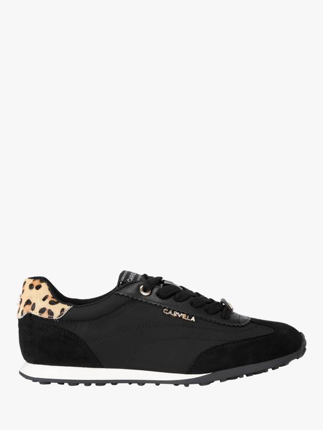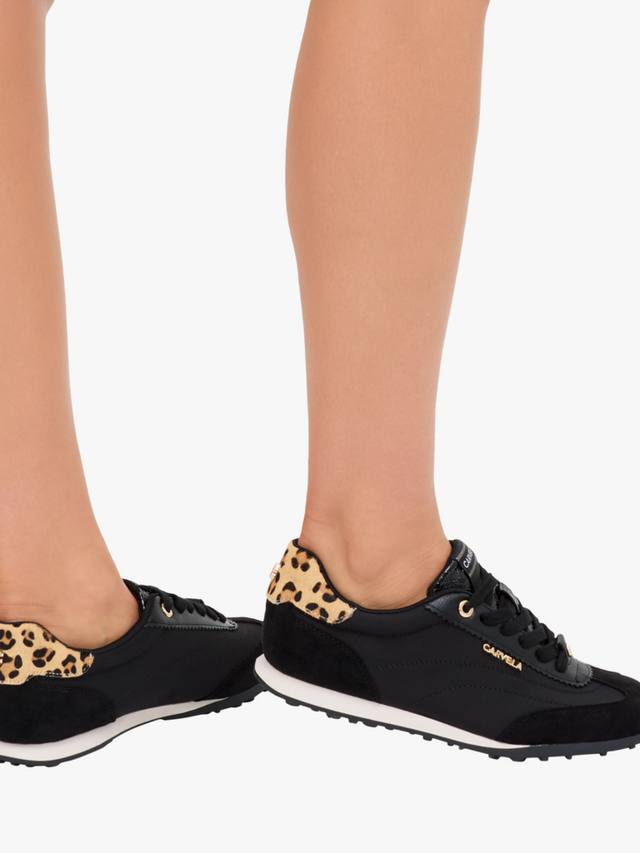 Кроссовки Carvela с закрытым круглым носком и плоской подошвой обеспечивают комфорт в течение всего дня. Шнуровка делает их практичными для повседневных приключений, а контрастный леопардовый акцент добавляет нотку индивидуальности.