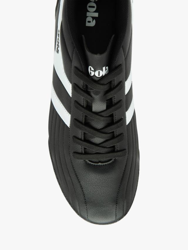 Super Cobra Turf от Gola — идеальные футбольные кроссовки для игры на AstroTurf. Эта модель со шнуровкой отличается тисненым верхом из кенгуру, неопреновым воротником и язычком для надежной посадки. Подошва из углеродного волокна и литая резиновая подошва AstroTurf с 3D-шипами обеспечивают устойчивость и поддержку стопы.