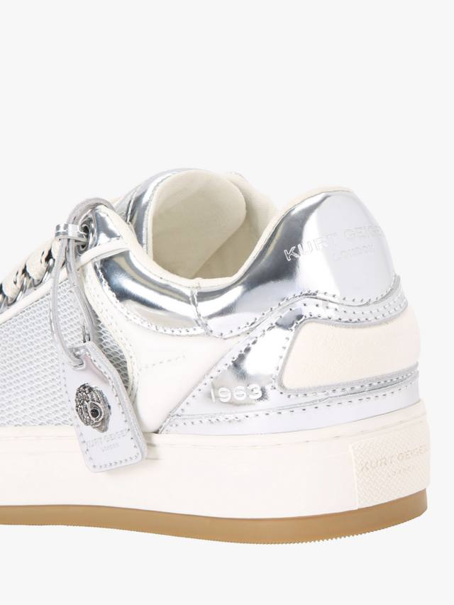 Пара эффектных кроссовок от Kurt Geiger London. Шнуровка и амортизирующая подошва обеспечивают комфорт в течение всего дня, а низкий каблук добавляет непринужденности вашим повседневным планам. Дополнены привлекательным металлическим блеском и фирменной подвеской.
