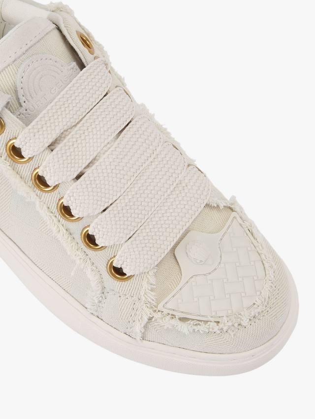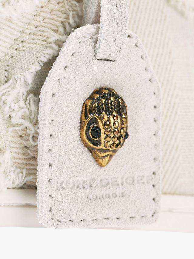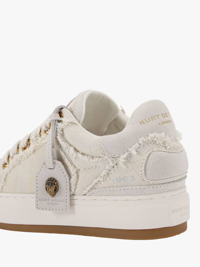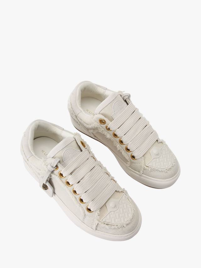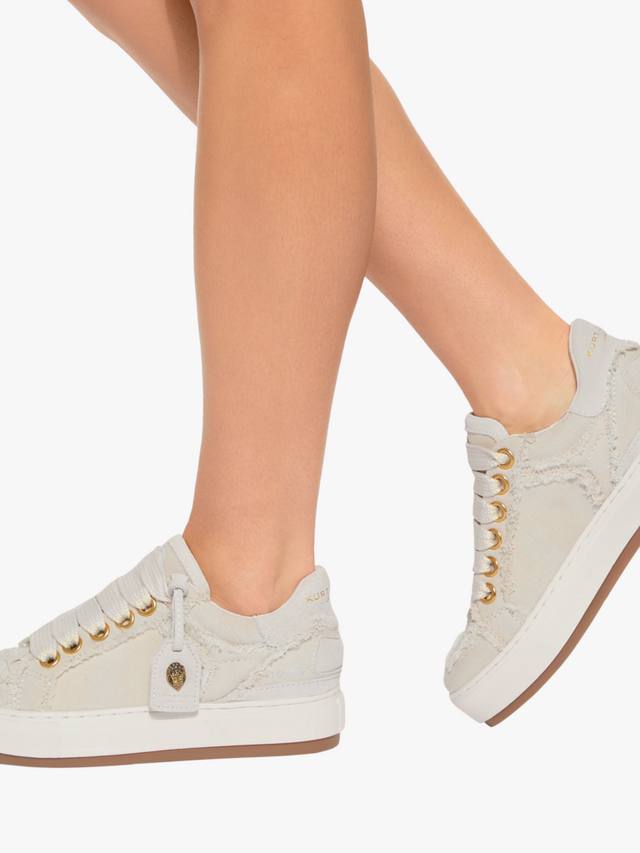 Кроссовки из парусины от Kurt Geiger London с поддерживающей плоской пяткой, шнуровкой и удобным круглым закрытым носком. Текстурированные рваные детали добавляют привлекательности, а также фирменная бирка с подвеской.