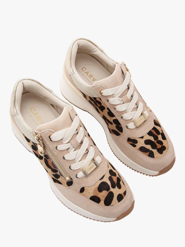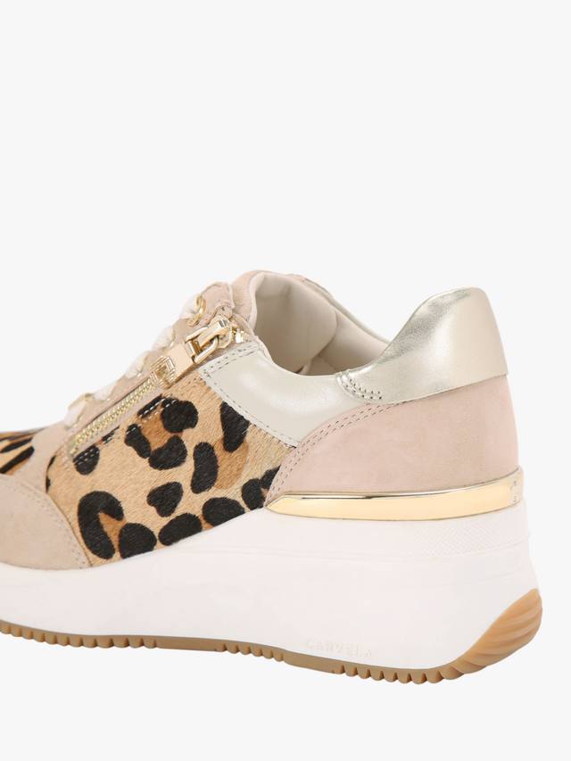 Эти кроссовки Carvela с леопардовым принтом и низкой танкеткой добавят изюминку вашему повседневному образу. Верх из кожи, шнуровка и молния сбоку позволяют легко снимать и надевать обувь.