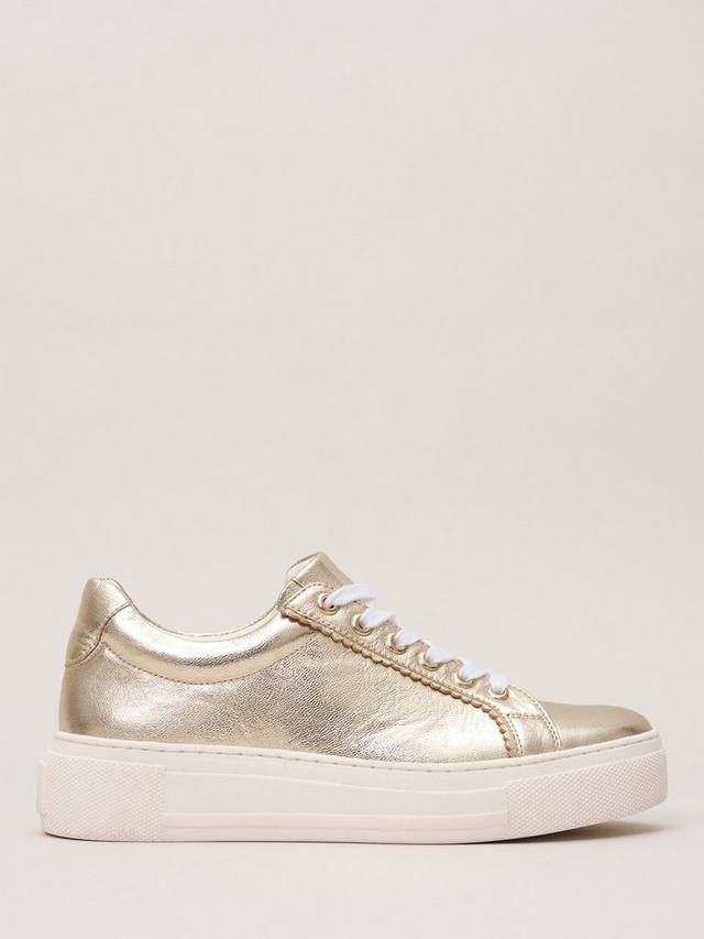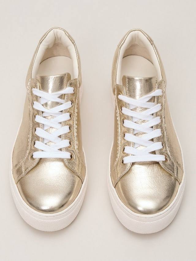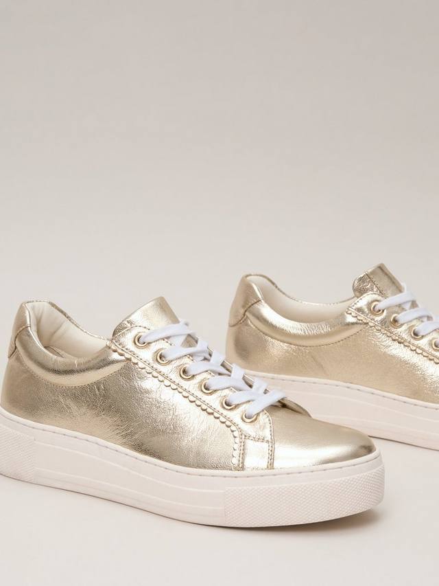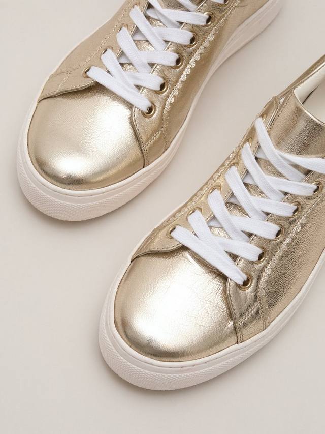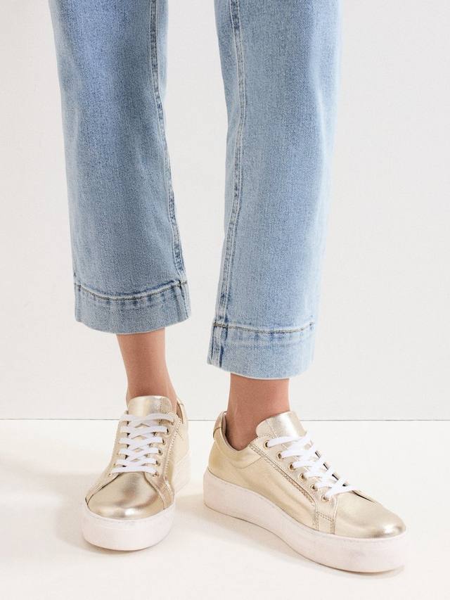 Новый взгляд на базовый предмет гардероба. Эти кроссовки из 100% кожи золотистого металлика мгновенно преобразят вашу обувь.