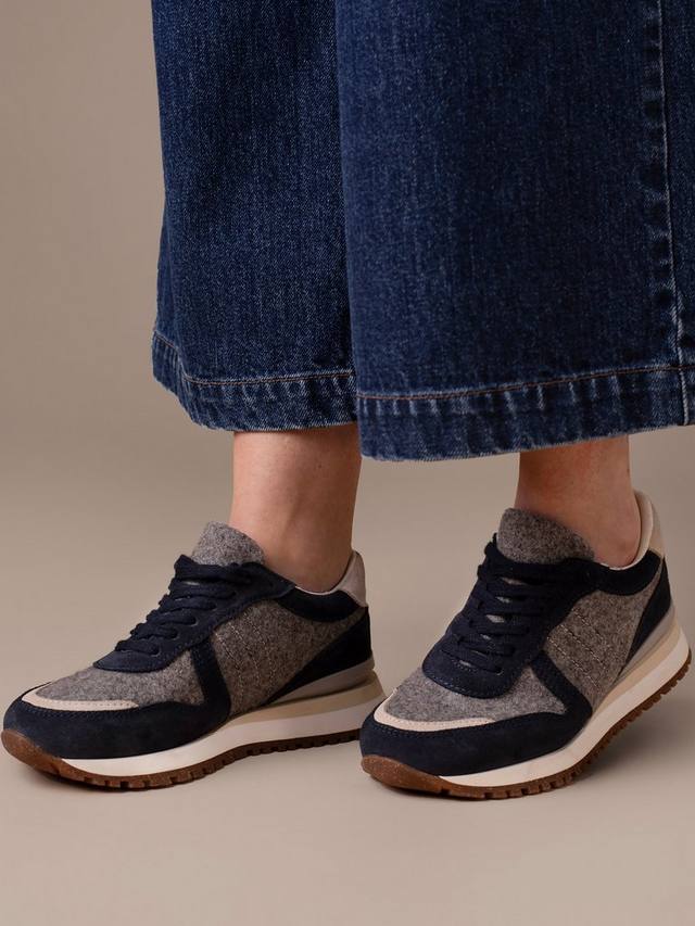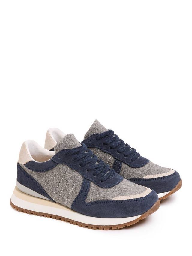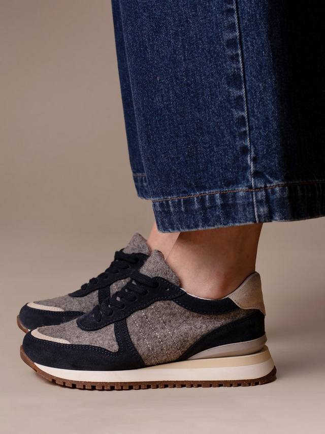 Эти кроссовки в стиле бегуна с верхом из коровьей замши и мериносовой шерсти. Подкладка из нейлоновой махровой ткани и пробковая стелька. В комплекте два комплекта шнурков.