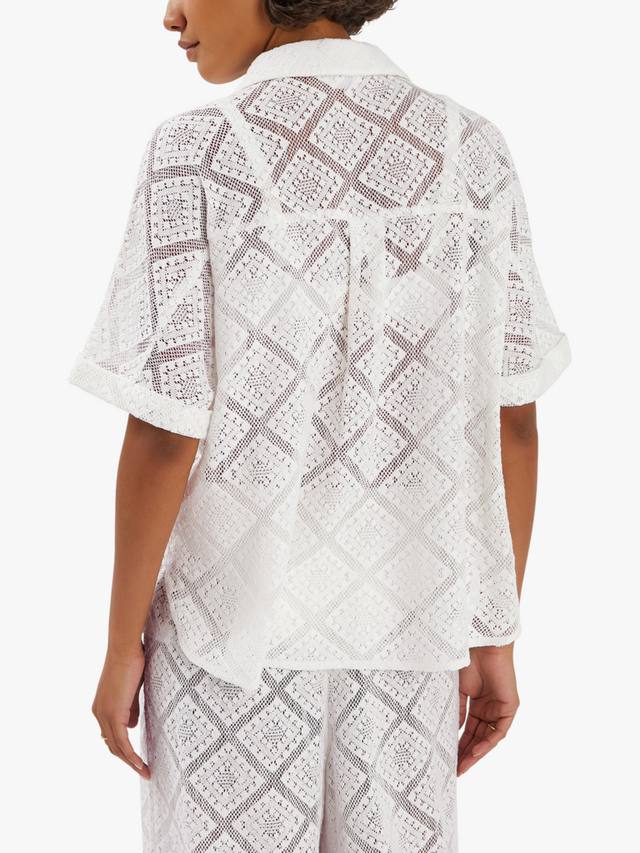 Кружевная рубашка с короткими рукавами и рисунком в виде плитки. Доступны подходящие брюки.