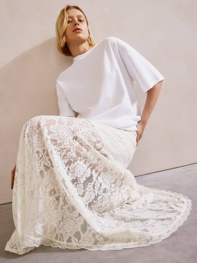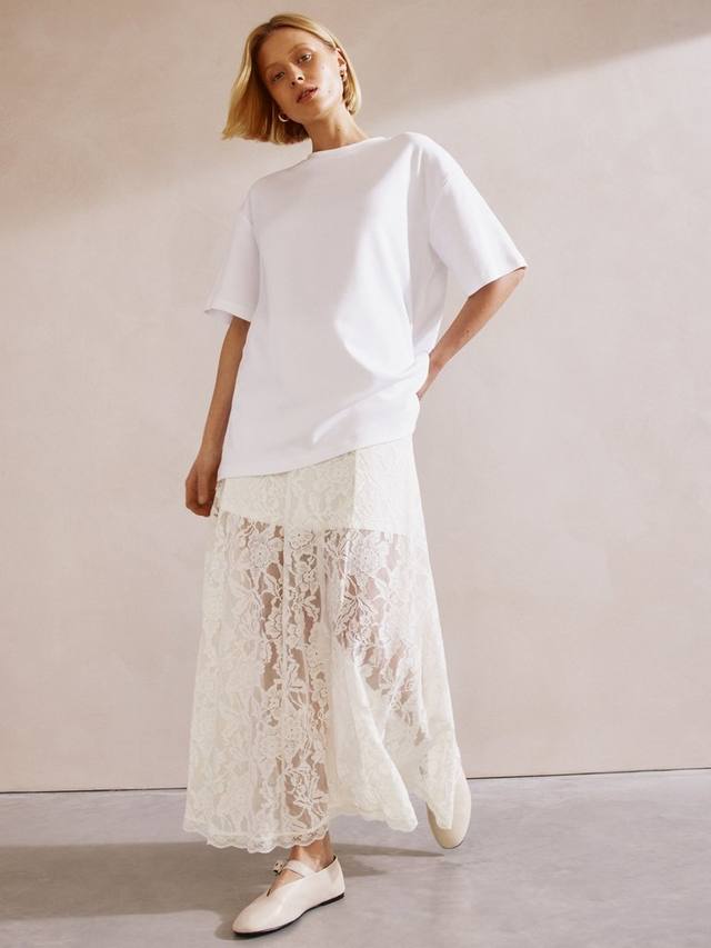 Эта юбка от Albaray А-силуэта дополнена кружевным верхом во всю длину поверх мини-подкладки. Она станет отличным дополнением к вашему гардеробу для теплой погоды, если надеть её с футболкой свободного кроя.