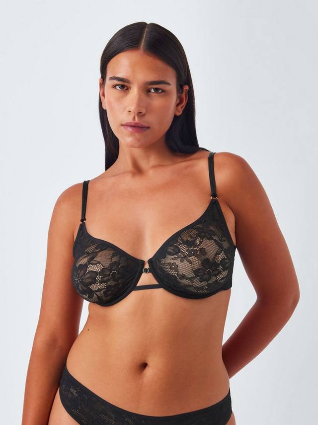 Бюстгальтер балконет с чашечками из цветочного кружева. Гладкие шелковые бретели и пояса создают уникальный каркас и соединены кольцевыми деталями. На косточках для поддержки.