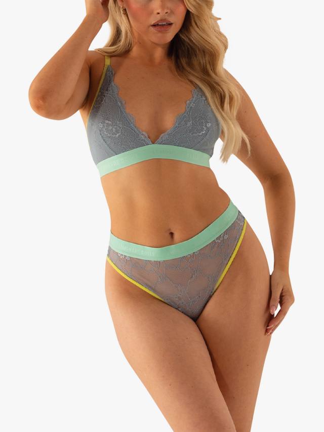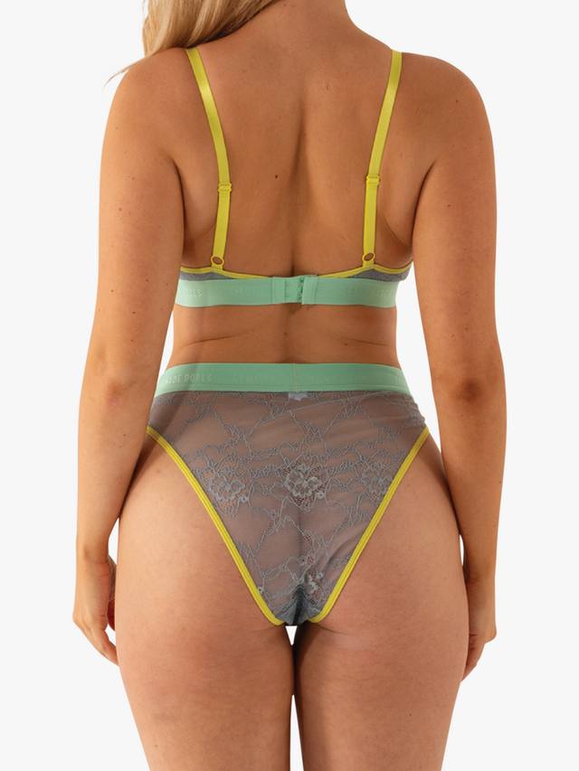 Зачем выбирать один цвет, когда можно выбрать три? Этот роскошный бюстгальтер без косточек, выполненный из популярного эластичного кружева Lemonade Dolls, имеет глубокий V-образный вырез, регулируемые бретельки и застежку на три ряда крючков и петель. Контрастная неоново-желтая окантовка и аквамариновая резинка с логотипом Lemonade дополняют этот триплет оттенков.