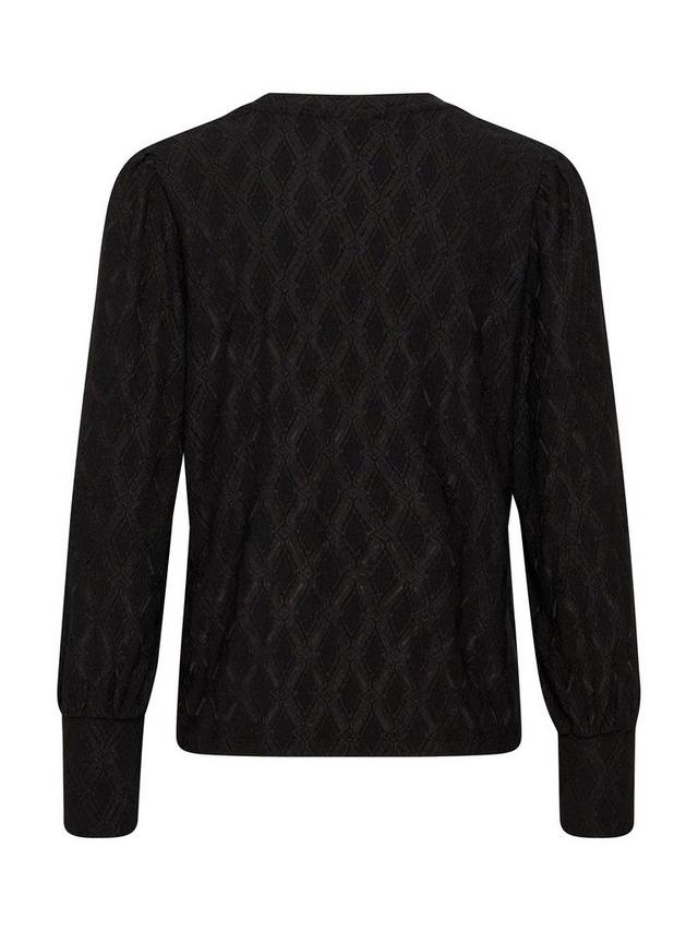 Блузка Tine — универсальный повседневный топ из красивого трикотажного кружева. Круглый вырез, классический крой и вырез на бедрах. Длинные рукава бишоп с лёгким объёмом собраны на широкую манжету. Блузка отлично сочетается как с брюками, так и с джинсами и юбкой.