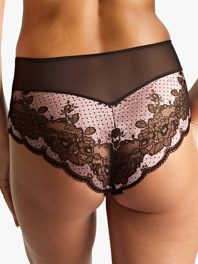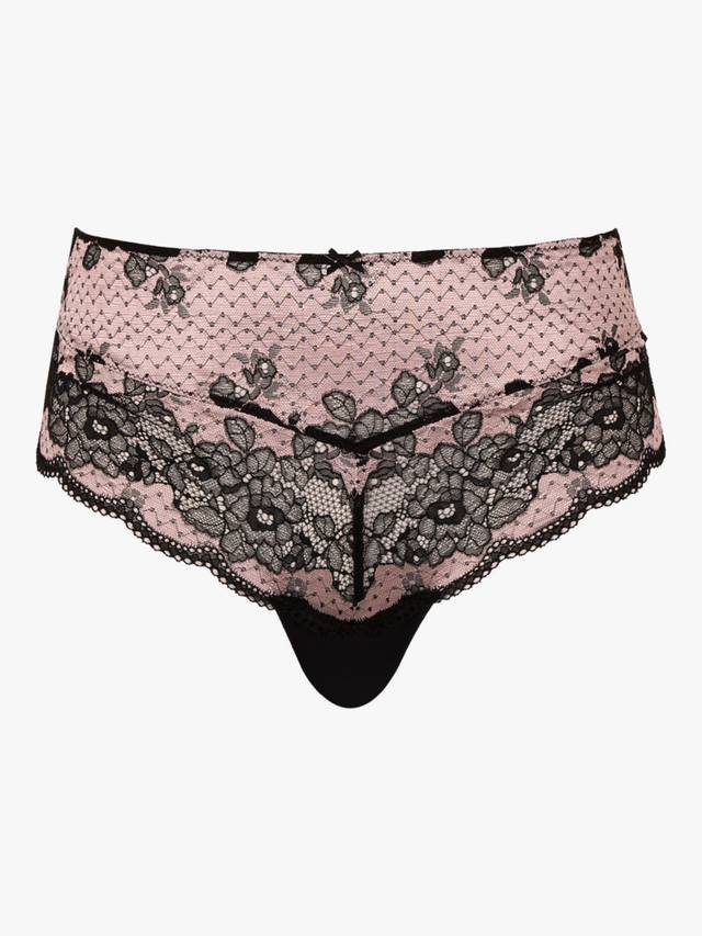 Идеальные глубокие трусики с роскошной блестящей отделкой, обрамленные кружевом с секциями.