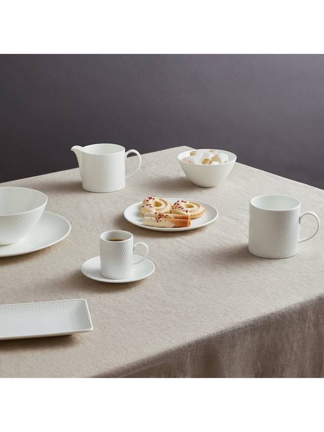 Эта кружка входит в коллекцию Wedgwood Gio, изготовленную из стильного белого тонкого костяного фарфора. Каждый предмет украшен тщательно проработанной инталией, которая углубляет рисунок на поверхности. Эта коллекция отличается лаконичностью и современностью, подходит для мытья в посудомоечной машине и микроволновой печи. Её легко сочетать с другими коллекциями Wedgwood, чтобы украсить вашу посуду.