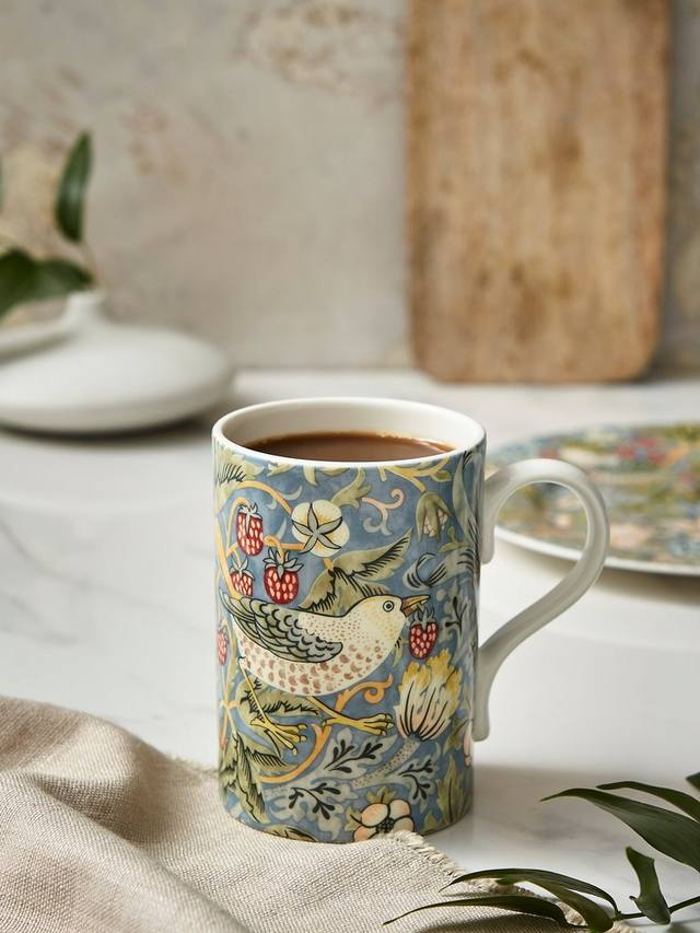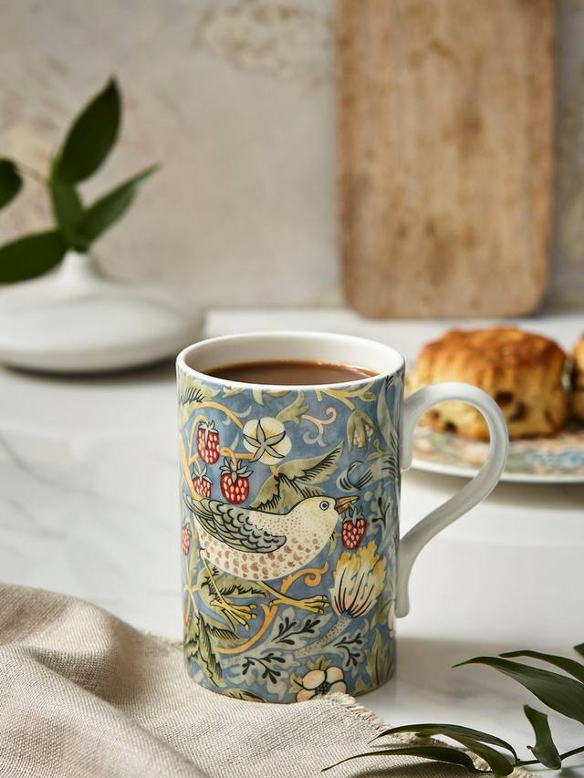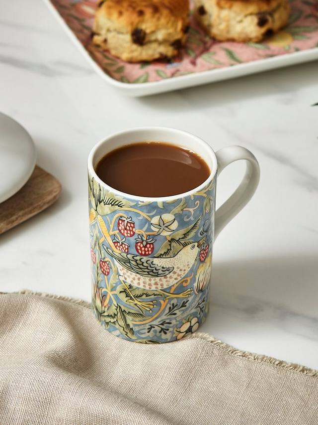 Фарфоровая кружка, вдохновленная историческим принтом Morris & Co. Strawberry Thief. Этот долговечный узор из архива художника и дизайнера искусства и ремёсел Уильяма Морриса, воплощённый в жизнь компанией Spode.