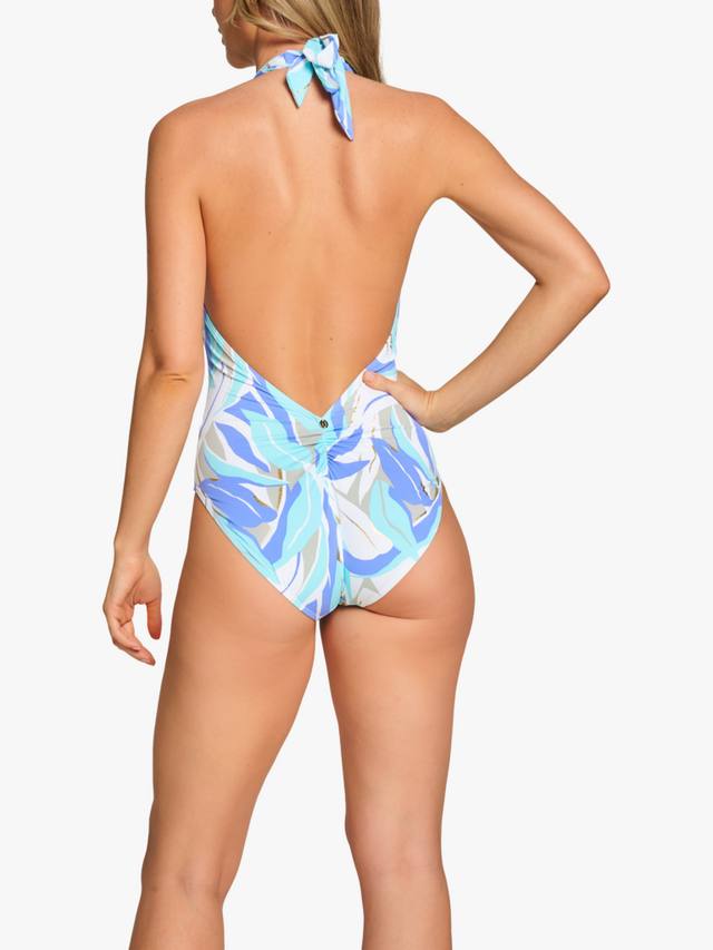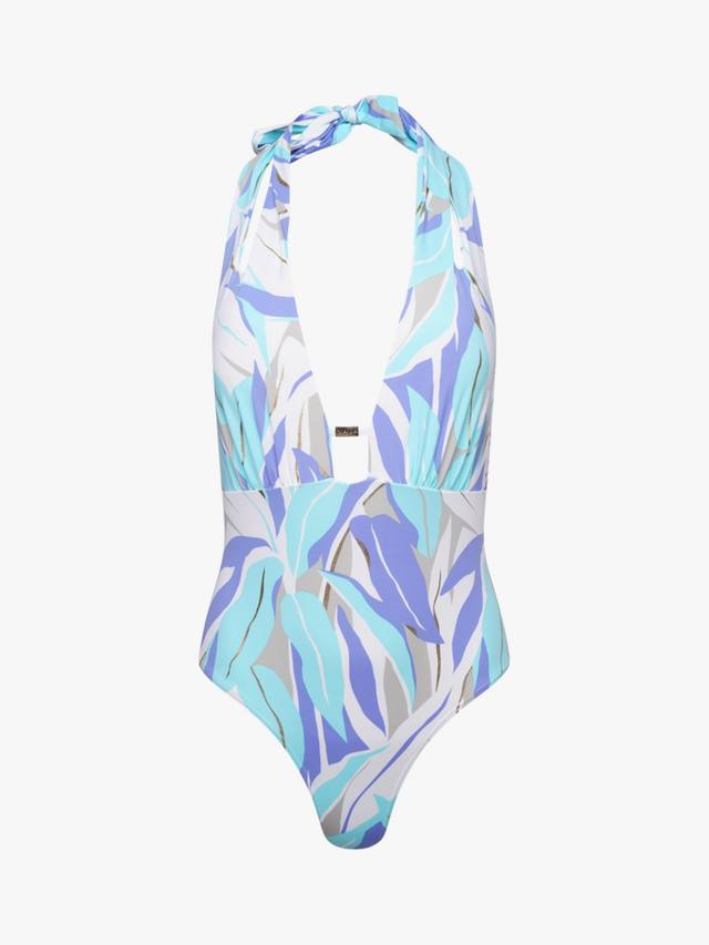 Благодаря изящным сборкам на ягодицах и слегка завышенному вырезу брючины она поможет подчеркнуть вашу фигуру и создать ошеломляющие изгибы. Глубокая спинка, изогнутая горловина и ажурная золотая планка NAIA добавляют идеальные штрихи, а золотые блестки мерцают на солнце.