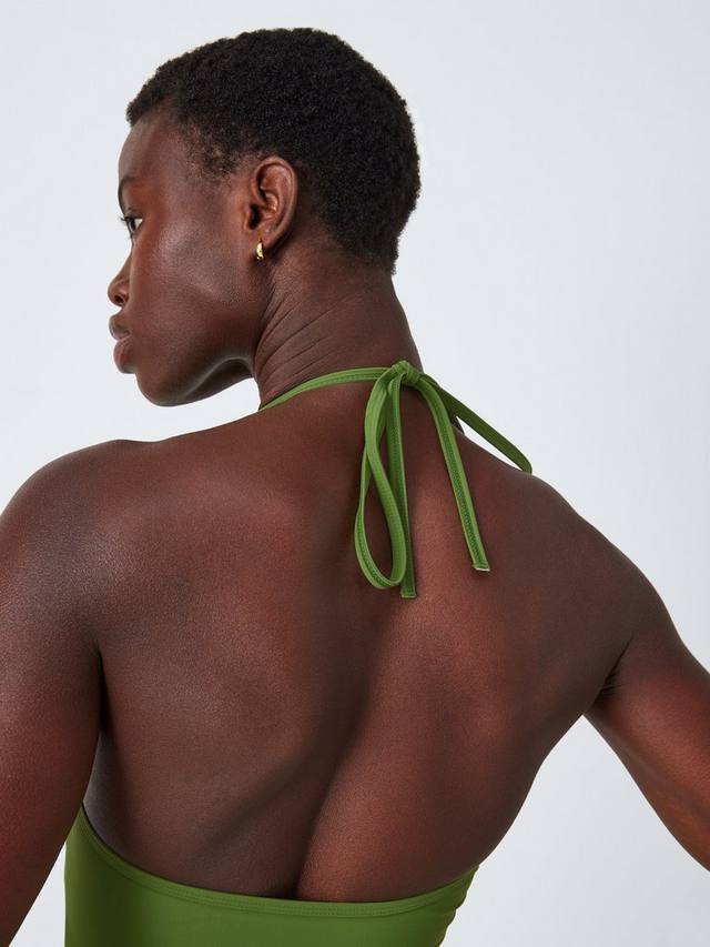 Этот купальник завязывается на шее халтер и имеет высокий вырез, визуально удлиняющий ноги. Высокое содержание эластана в составе ткани обеспечивает более плотную и надежную посадку.