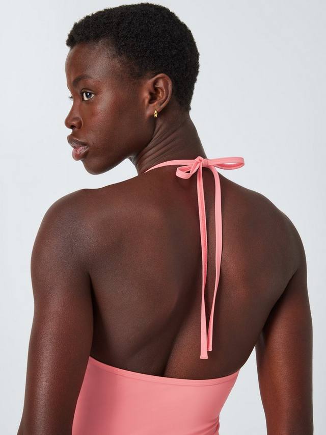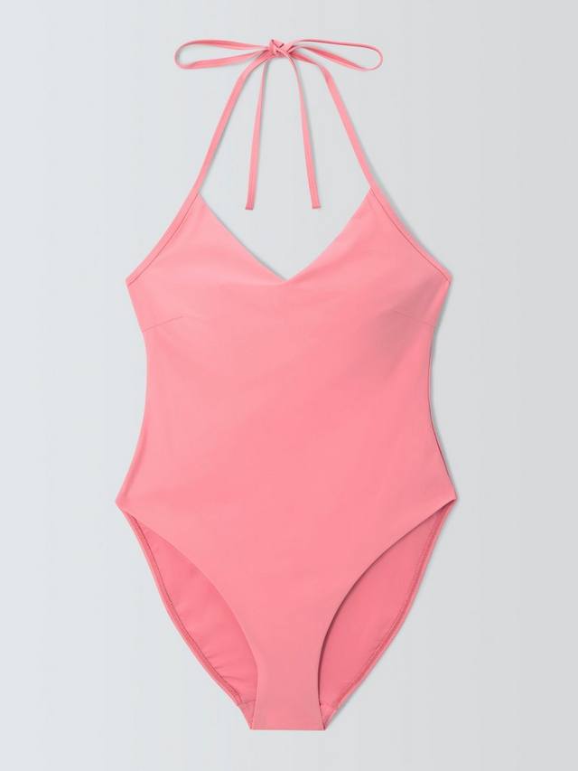 Этот купальник завязывается на шее халтер и имеет высокий вырез, визуально удлиняющий ноги. Высокое содержание эластана в составе ткани обеспечивает более плотную и надежную посадку.