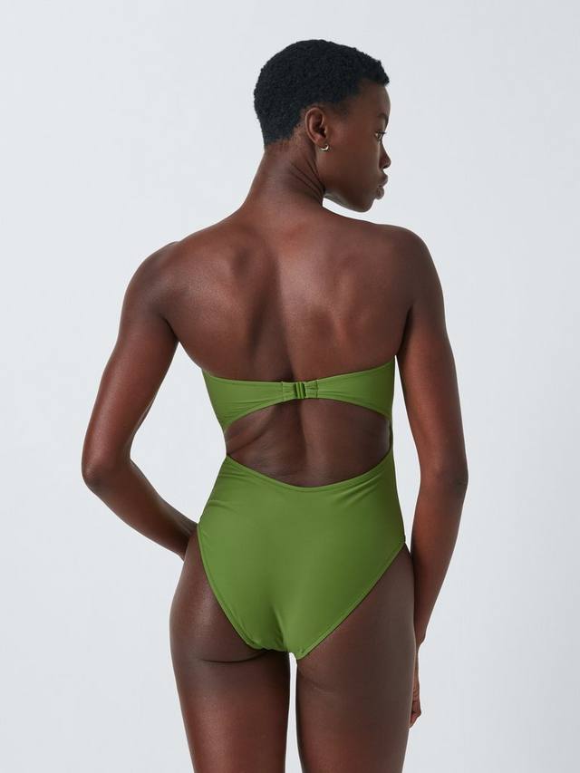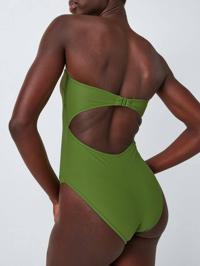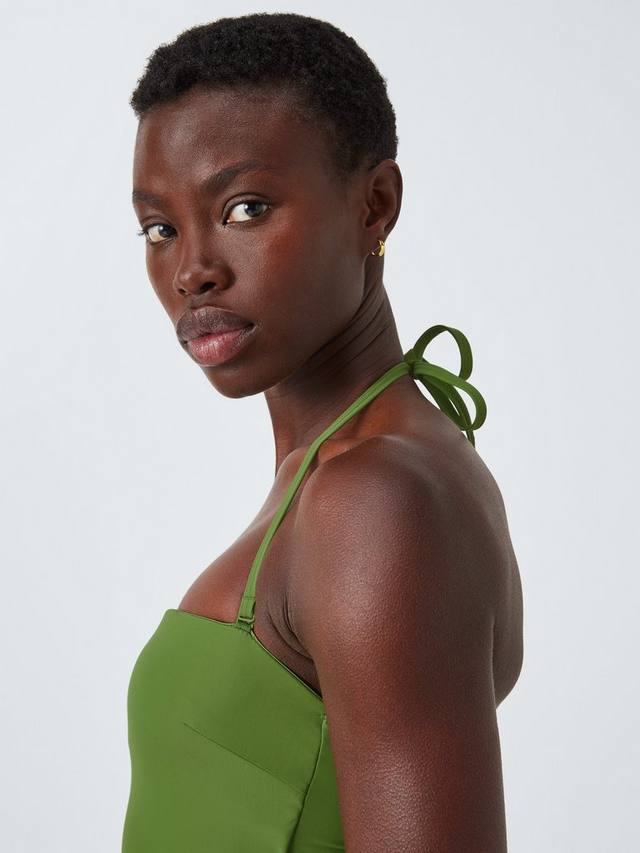 Этот купальник застегивается на спине на застежку с вырезом. Съёмные бретельки позволяют менять фасон с бандо на халтерне. Высокое содержание эластана обеспечивает более плотную и надёжную посадку.