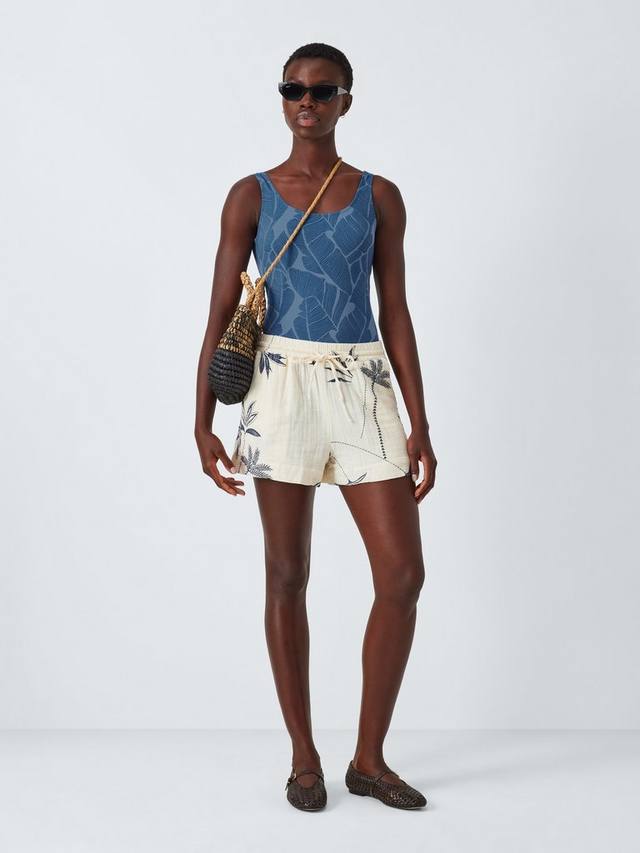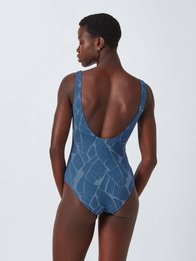 Купальник без косточек с круглым вырезом, фиксированными бретельками и принтом по всей поверхности.