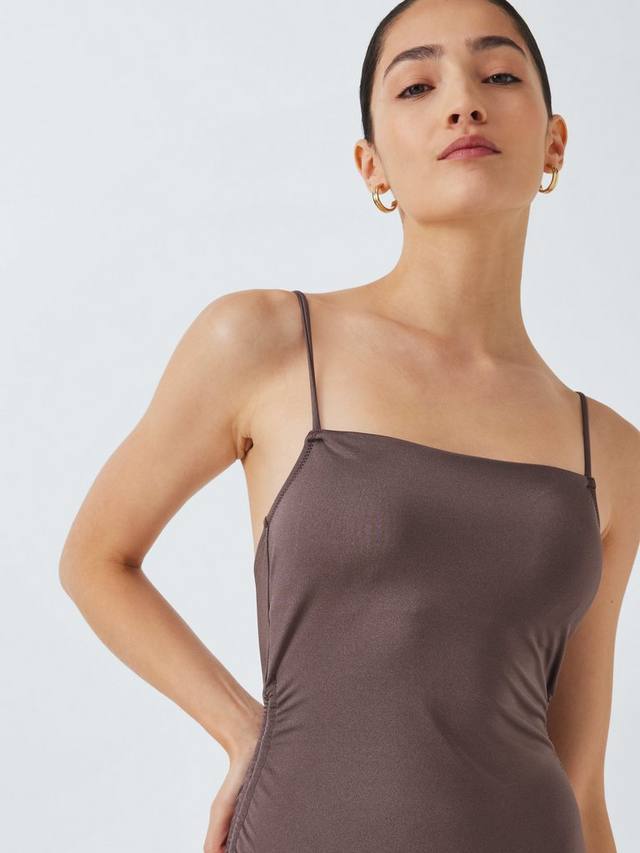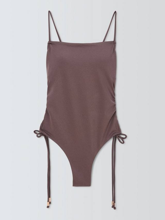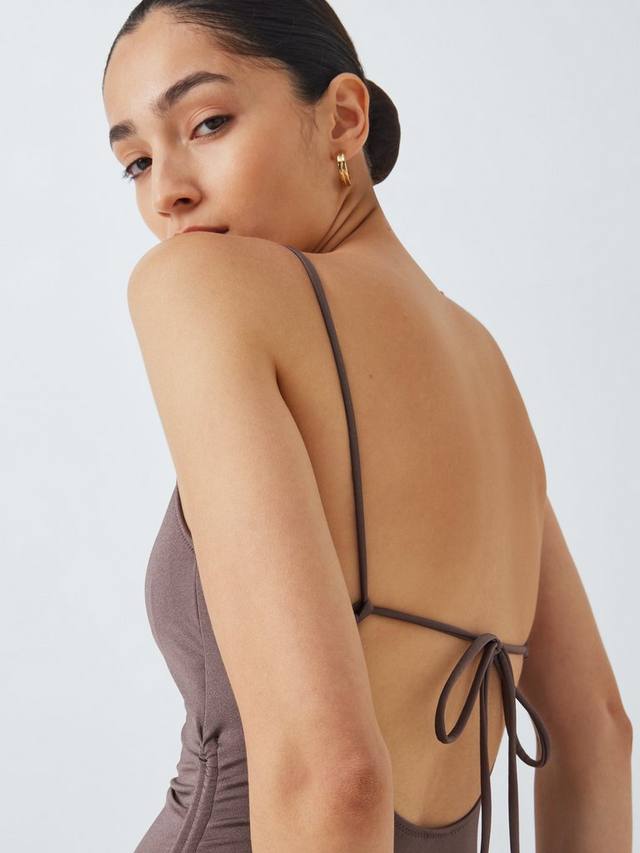 Наш купальник Riva полностью на подкладке имеет простые бретельки-шнурки, которые завязываются на спине. Они сочетаются с завязками по бокам, которые создают эффект сборок и подчеркивают живот.
