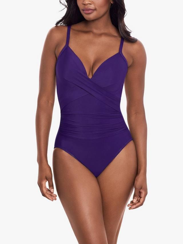 Этот купальный костюм от Miraclesuit с привлекательным вырезом-оберткой, формованными чашками и удобными перекрещивающимися бретельками на спине подарит вам настроение на целый день под солнцем.