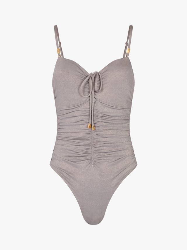 Вневременный силуэт без бретелек со съемными бретельками, сборками и Naia Beach Subtle Sculpt, подчеркивающими талию.