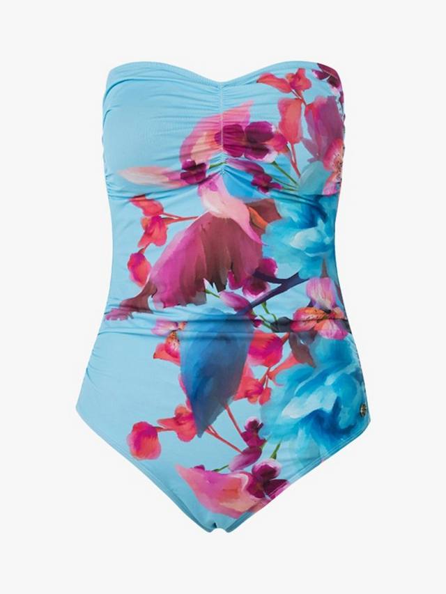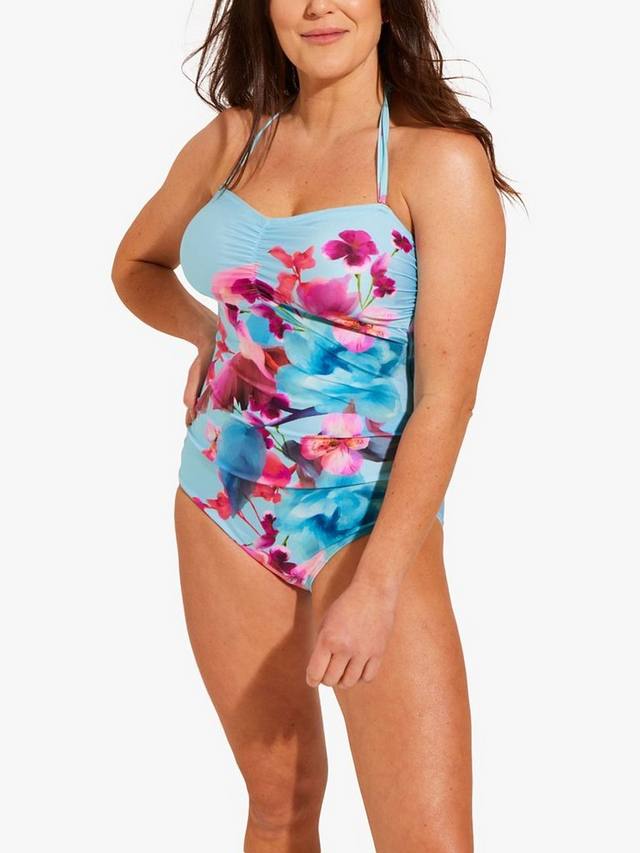 Этот купальник стандартной длины со сборками на вырезе-бандо имеет фиксированные подушечки для груди и драпированные детали вокруг живота для удобной и поддерживающей посадки. В комплекте регулируемая бретелька через шею, которую можно снять, но вам будет комфортно благодаря нескользящей полоске, которая гарантирует, что купальник не сползет.