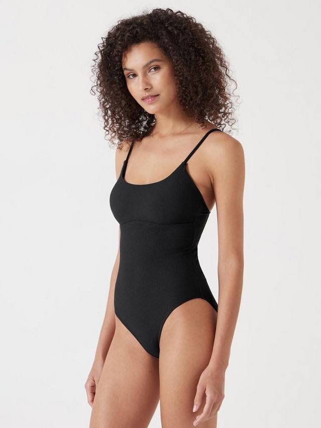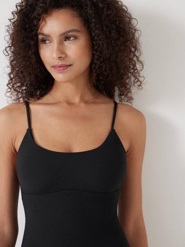 Самое важное, на что следует обратить внимание при покупке нового купальника? Всё дело в фасоне, например, в квадратном вырезе этого фактурного купальника. HUSH сделал чашки съемными, а бретели регулируемыми, чтобы вы могли подобрать посадку именно так, как вам нравится, а вырез сзади придает ему модный вид.