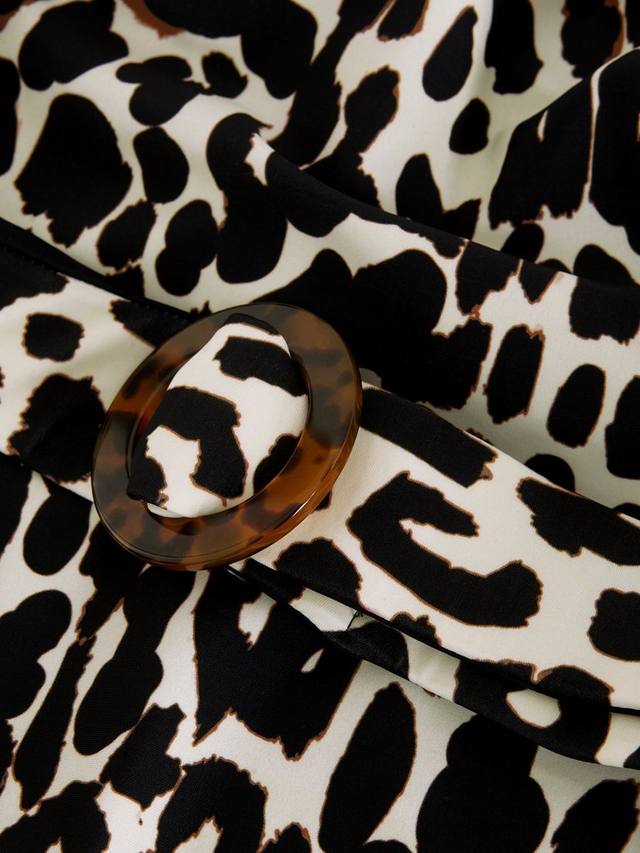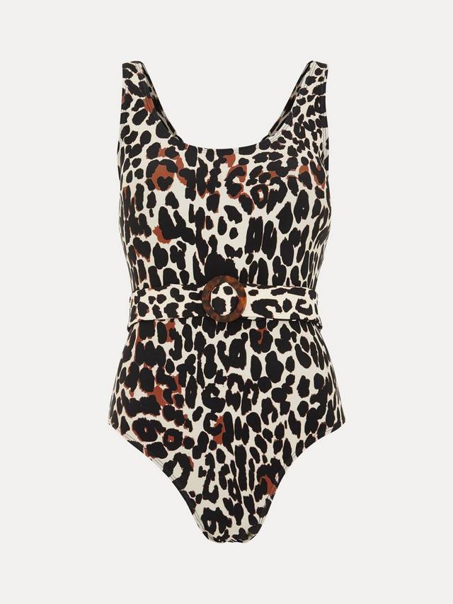 Этот купальник с леопардовым принтом всегда в тренде и станет отличным дополнением к вашему гардеробу. Он имеет глубокий вырез, дополнен поясом в тон и пряжкой из черепахового панциря, что придает ему современный вид и идеально подходит для вашего следующего отпуска.