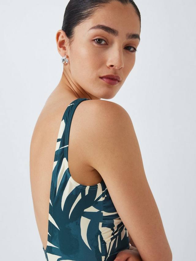 Купальник на подкладке с глубоким вырезом на спине, фиксированными бретельками и сборками на животе для приталенного образа.
