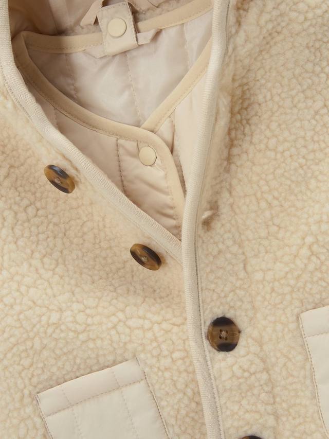 Утеплённая куртка из искусственного меха с объёмными ушками для дополнительной привлекательности. Внутренний жилет отстёгивается на кнопках.