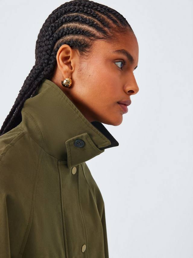 Эта короткая куртка в стиле амбар, сотканная из мягкого, дышащего хлопка с водоотталкивающей пропиткой, воплощает деревенский стиль. Большие карманы в практичном стиле и кнопки спереди. Поднимите воротник и закатайте рукава, чтобы сделать куртку еще более стильной.