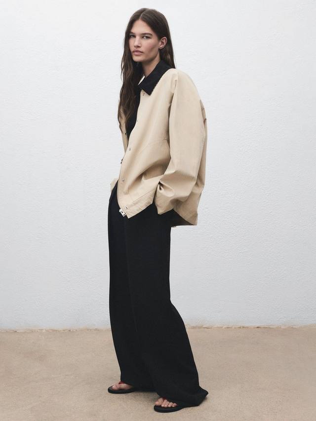 Эта практичная куртка от Mango, прославляющая внимание к деталям благодаря своим выразительным передним карманам, имеет практичную посадку на бедрах для защиты.