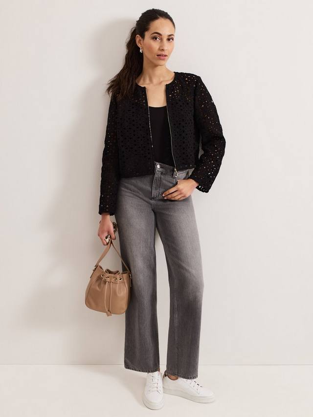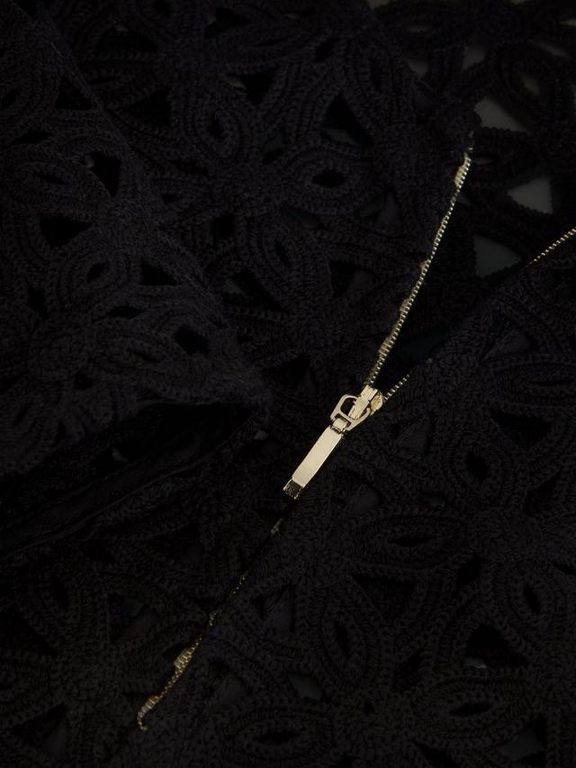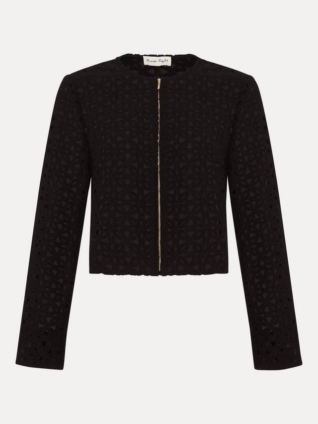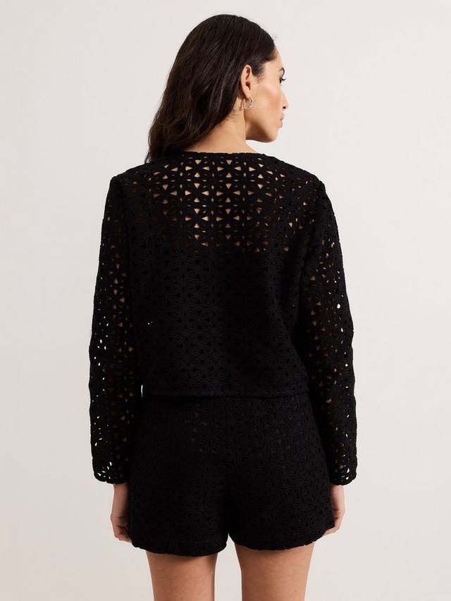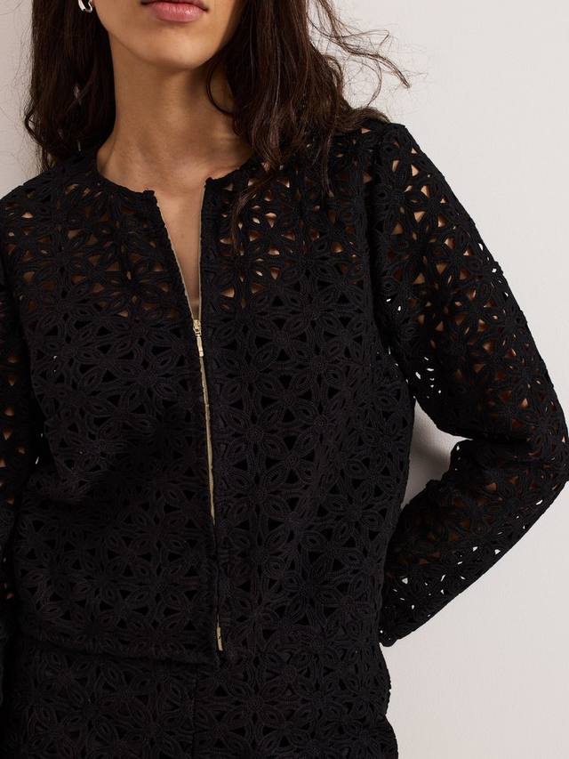Вязаный крючком жакет Maeva идеально подходит для создания непринужденного образа. Изысканная отделка ришелье украшает укороченный квадратный силуэт, придавая ему легкость и современный вид, а застежка — простая золотая молния.