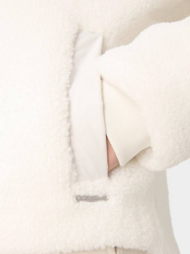 Уютная куртка-кокон, достаточно теплая для самых холодных дней. Изготовлена из мягкой шерпы на подкладке. Свободный крой с закругленным подолом и воротником-стойкой для защиты от холода. Два боковых накладных кармана и один потайной внутренний карман.