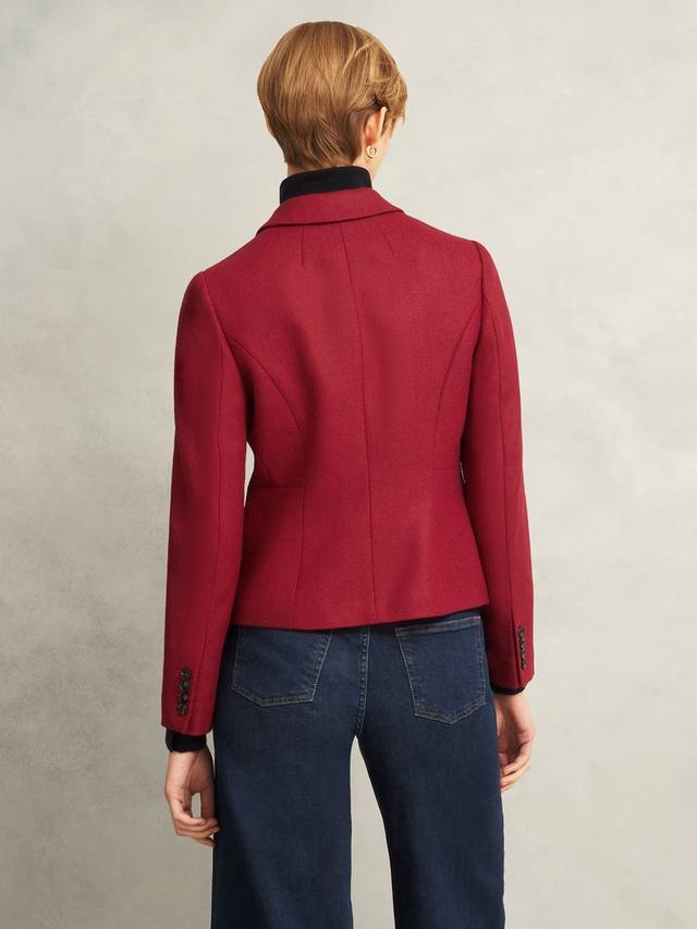 Этот однобортный шерстяной жакет имеет укороченный крой и приталенный воротник, обеспечивающий комфорт и элегантность. Созданный для миниатюрных пропорций, он добавит элегантности вашему дню, сочетая уверенность с острым и игривым оттенком.