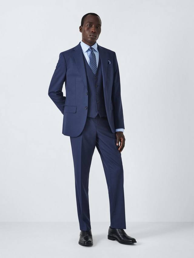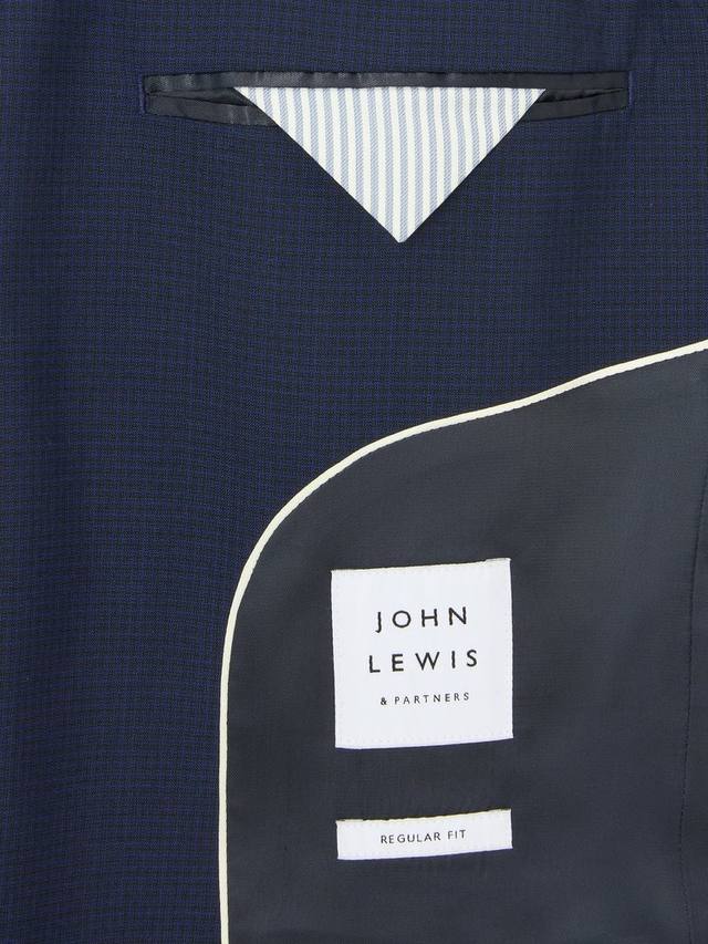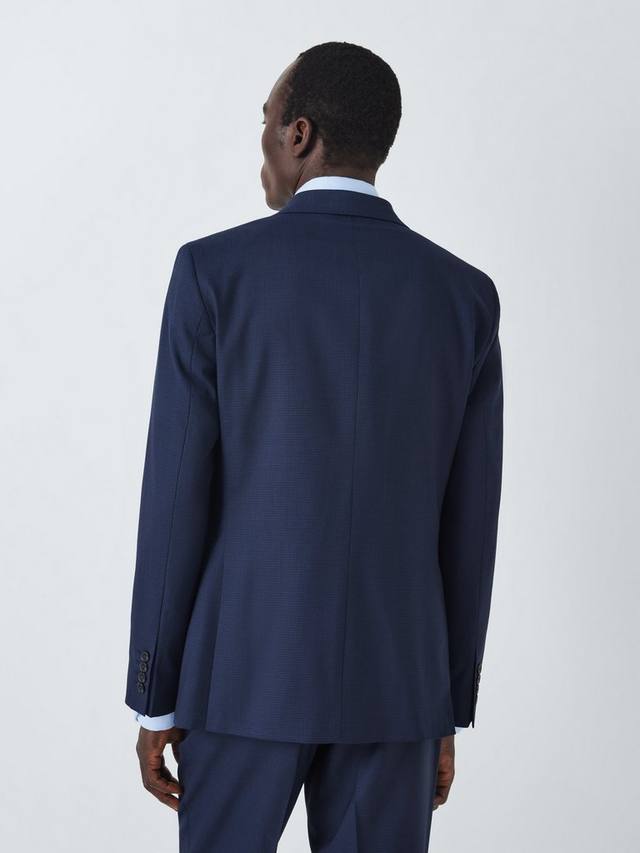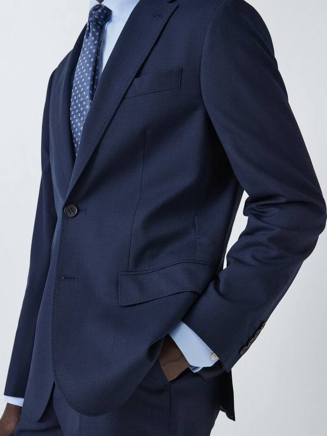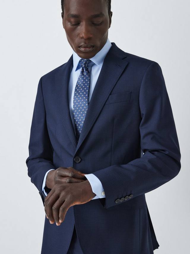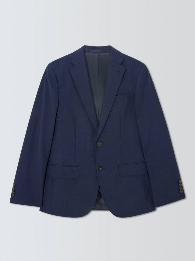 Темно-синий блейзер с сетчатым узором, скроенный по нашему стандартному крою. С лацканами, карманами с клапанами и прорезным нагрудным карманом.