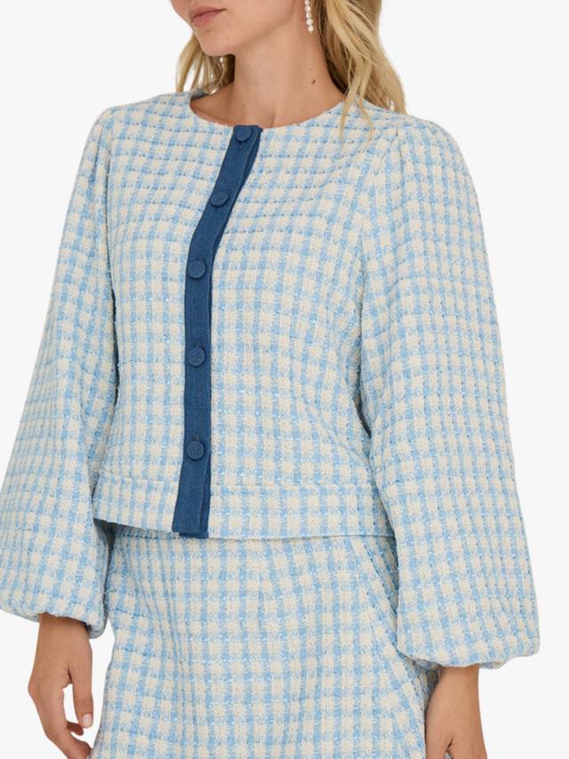 Изделие из прочной ткани с круглым вырезом, дополненное клетчатым узором, можно легко накинуть поверх элегантно-повседневного наряда, когда погода непредсказуема.