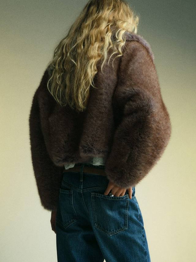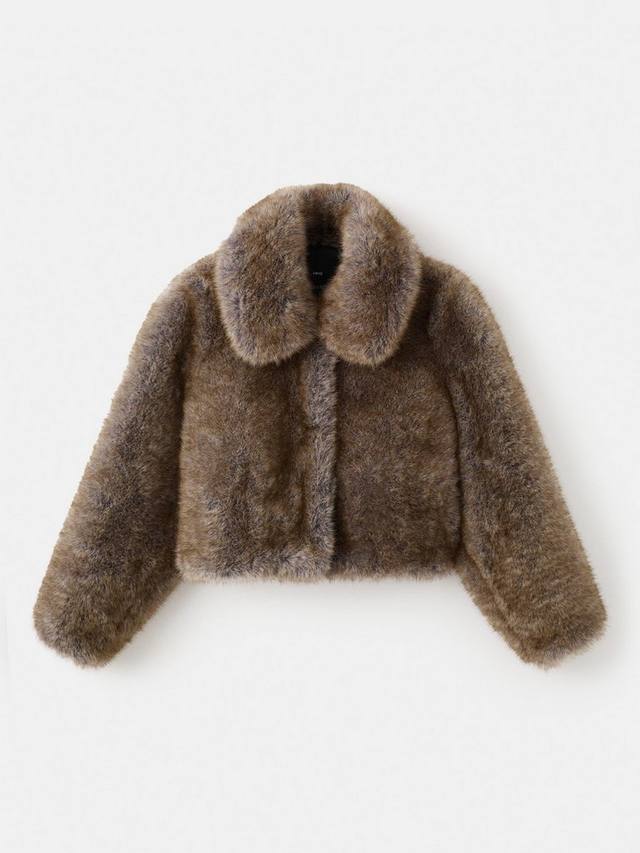 Уютная укороченная куртка из искусственного меха. Классический крой обеспечивает свободу движений, а воротник-стойка и простой дизайн делают её универсальной вещью для любого случая.