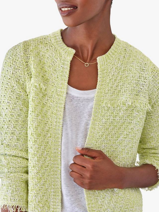 Оно имеет свободный открытый вырез и текстуру для дополнительной привлекательности. Оно изготовлено из хлопка для воздухопроницаемости и комфорта, идеально подходящего для ношения поверх любой одежды, как днем, так и вечером.