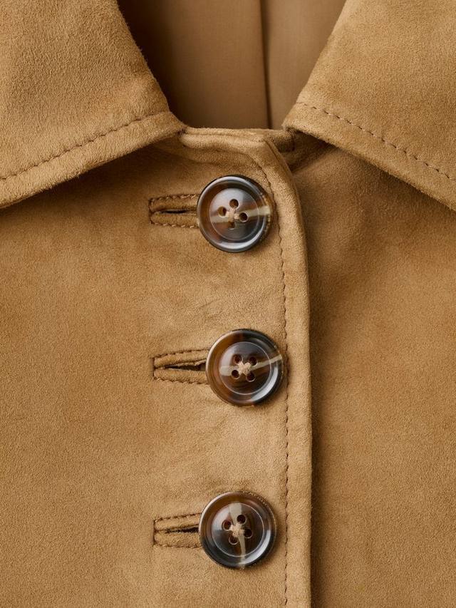 Отложной воротник придает уверенности, а замшевая ткань добавит текстуру вашему образу.