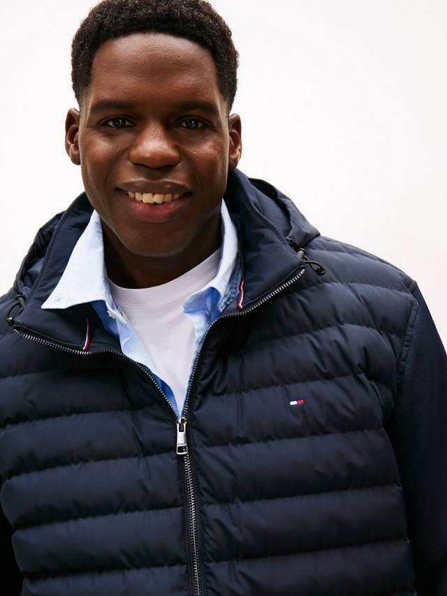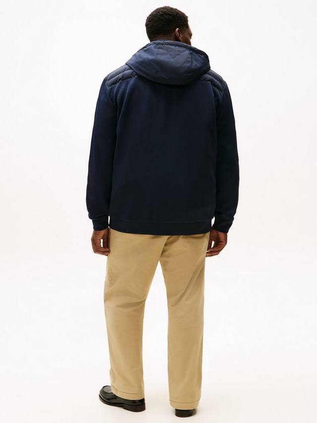 Эта премиальная толстовка с капюшоном на молнии из технотрикотажа идеально подходит для прохладной погоды. Она стильная и универсальная, идеально подходит для многослойной одежды. Стеганый корпус, воротник-стойка и вставки из смешанной фактуры создают интересный визуальный образ. Съёмный капюшон для удобства, два боковых кармана для практичности и фирменный флаг на груди.