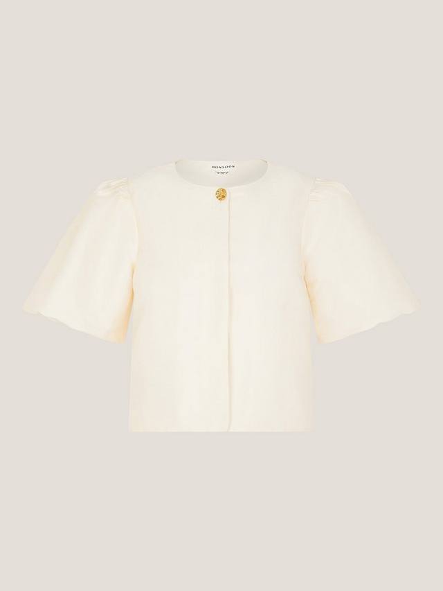Укороченная куртка Monsoon станет ярким акцентом в летнем образе. Изготовленная из мягкой, струящейся ткани с рукавами-буфами, она отличается четким силуэтом и лаконичным дизайном, сочетающим изысканность с утонченной строгостью – для любого случая.