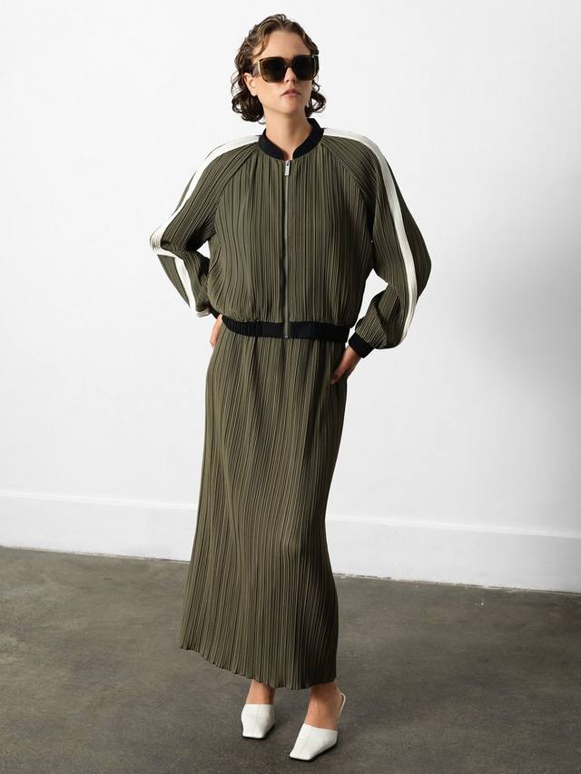 Выведите свою игру многослойности на новый уровень с курткой-бомбером Niri Plisse, которая идеально сочетает в себе повседневный стиль и современный стиль, от текстурированных плиссированных складок до ярких полос на рукавах. Дополните образ подходящей юбкой-футляром Niri Plisse.