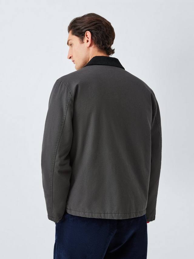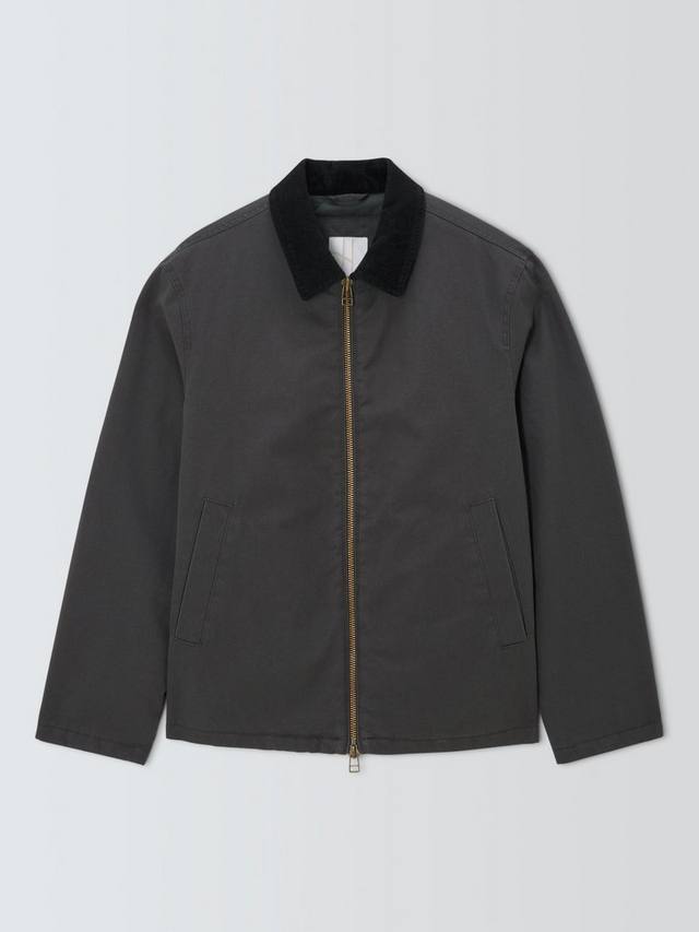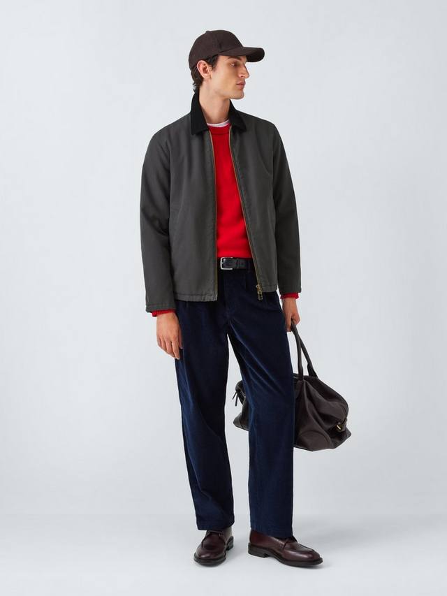 Куртка-бомбер из дышащего и прочного хлопкового полотна с контрастным вельветовым воротником. Двусторонняя молния спереди и два боковых прорезных кармана.